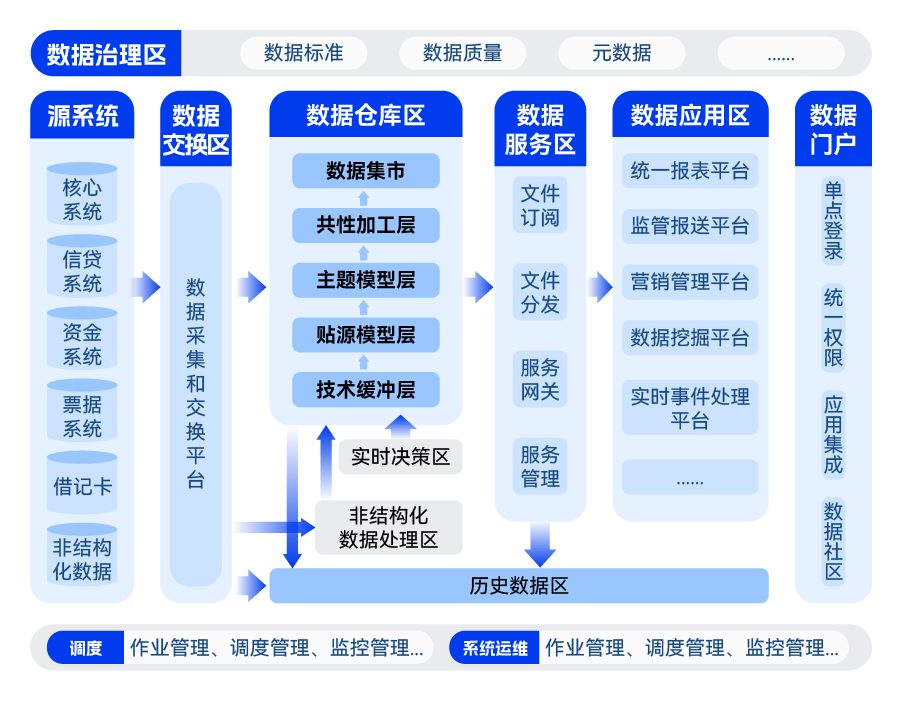 成熟的金融行業(yè)數(shù)據(jù)模型實現(xiàn)數(shù)據(jù)有效整合 基于金融行業(yè)多年沉淀積累,形成了適用于不同行業(yè)的數(shù)據(jù)模型,穩(wěn)定、易于擴展,適應(yīng)業(yè)務(wù)發(fā)展的需要; 先進的信創(chuàng)產(chǎn)品架構(gòu)支持客戶未來規(guī)劃 采用全信創(chuàng)自主可控環(huán)境,核心引擎的數(shù)據(jù)庫組件擁有高可用、高可靠、高性能、高穩(wěn)定、高擴展的優(yōu)勢,滿足在金融行業(yè)的規(guī)?;瘧?yīng)用,匹配客戶業(yè)務(wù)的核心訴求,可為未來業(yè)務(wù)發(fā)展提供更多可能性; 全面的配套工具保障高效的開發(fā)運維 基于長亮科技自研調(diào)度平臺、開發(fā)平臺、交換平臺等產(chǎn)品,以配置化方式,大大減少手工編碼工作量,提升運維效率; 與數(shù)據(jù)管控有效結(jié)合保證數(shù)據(jù)有序管理 結(jié)合企業(yè)數(shù)據(jù)治理體系,在數(shù)據(jù)倉庫層面實現(xiàn)全面數(shù)據(jù)標(biāo)準(zhǔn)落地、數(shù)據(jù)質(zhì)量自動檢核監(jiān)控、數(shù)據(jù)安全分類分級等,使數(shù)據(jù)倉庫的數(shù)據(jù)更加安全、易用,可為經(jīng)營分析、監(jiān)管報送等應(yīng)用場景提供準(zhǔn)確、全面、可靠的數(shù)據(jù)資源; 支持超過50個應(yīng)用的供數(shù)要求 能夠支撐經(jīng)營管理、客戶管理、財務(wù)管理、風(fēng)險管理以及監(jiān)管報送等超過 50 個應(yīng)用的供數(shù)要求,滿足金融機構(gòu)精細(xì)化運營的需要。