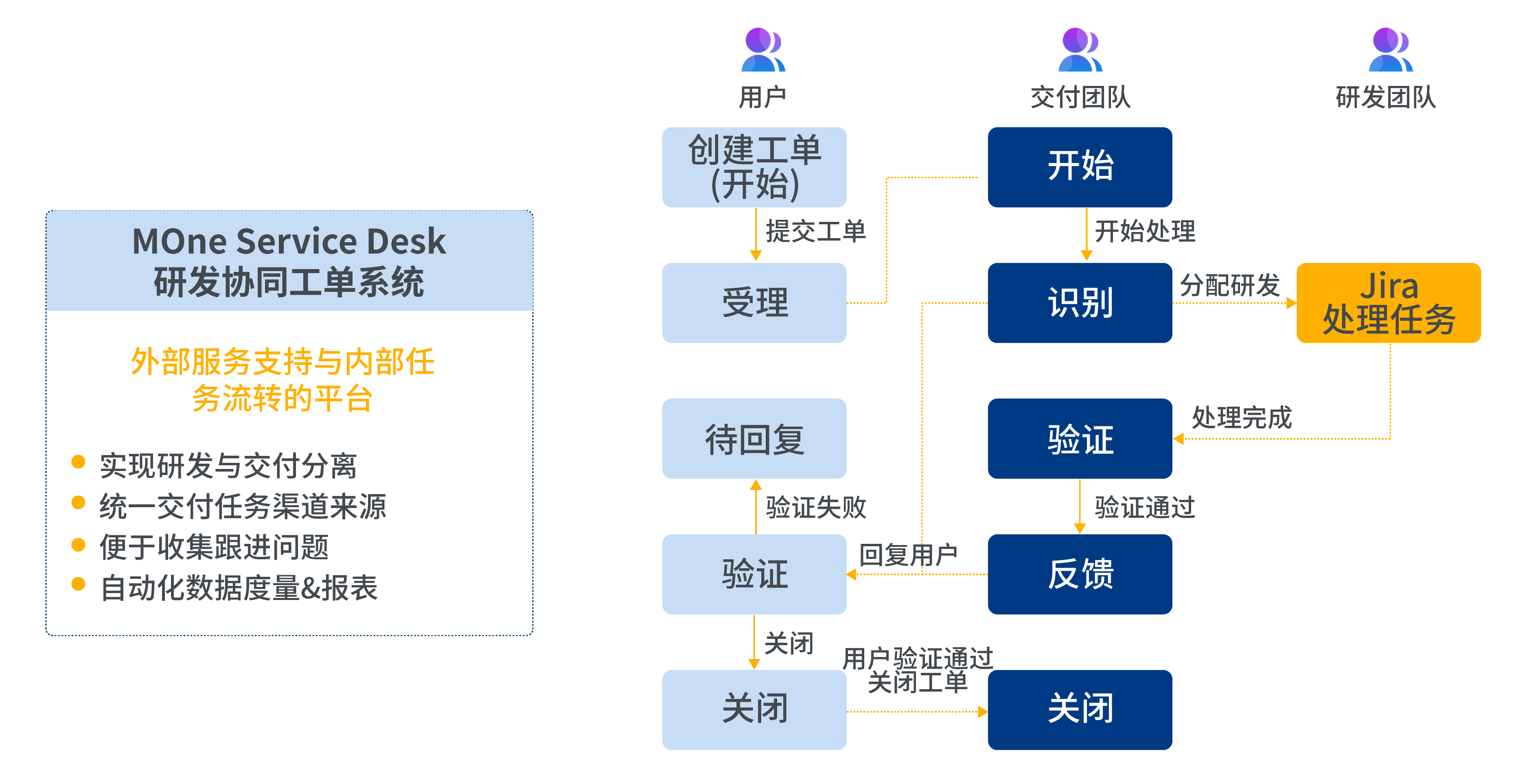 MOne Service Desk 研發(fā)協(xié)同工單系統(tǒng)為不同的使用者提供了對(duì)應(yīng)的流程規(guī)范: