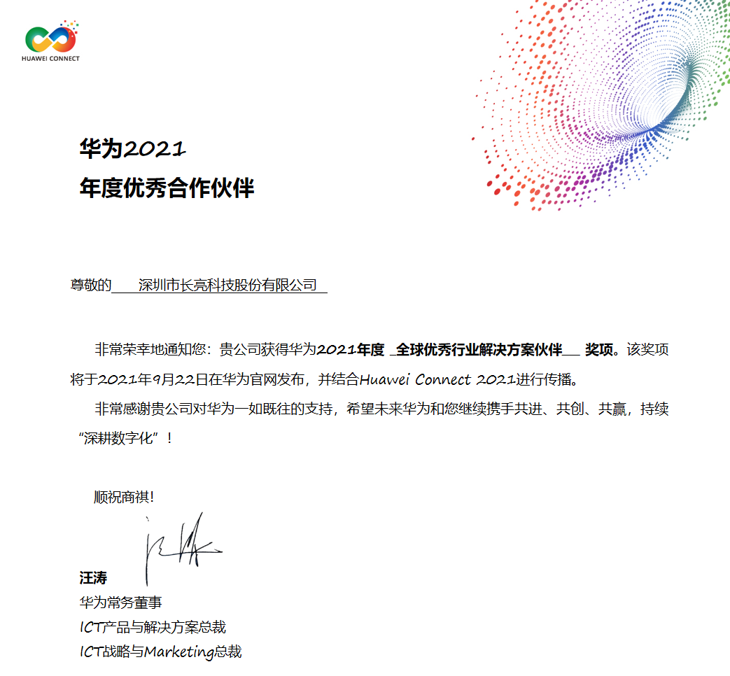 9月23-25日,華為全聯(lián)接大會(huì)(HUAWEI CONNECT 2021)盛大召開,會(huì)上華為公布了ICT基礎(chǔ)設(shè)施領(lǐng)域2021年度優(yōu)秀合作伙伴獲獎(jiǎng)名單,長(zhǎng)亮科技成為金融行業(yè)唯一的全球優(yōu)秀行業(yè)解決方案伙伴。